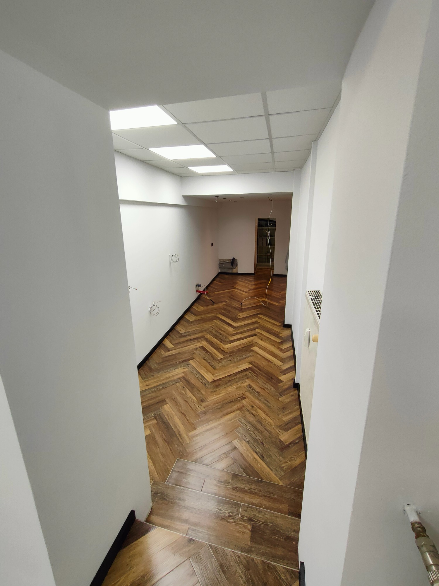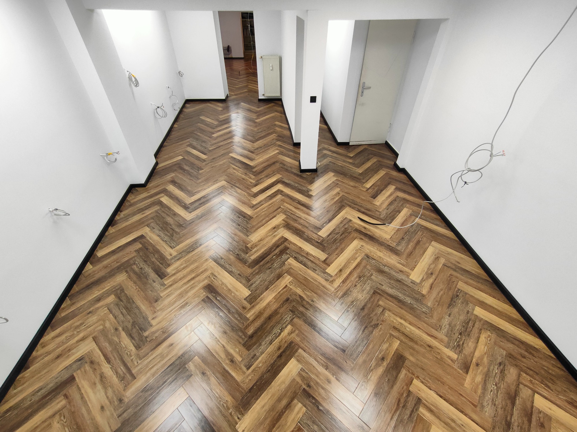 Für einen Renommierten Friseur in Mönchengladbach, haben wir den Umbau seines neuen Salons übernommen. Zu den Leistungen gehören, - Entfernung einer Zwischenwand, - Errichten einer Trockenbaudecke & Wand, - Verputzen & Glätten der Wände, - Alle Wände Weiß Streichen, - Anpassung des Beleuchtung Konzeptes, - Anpassung der Elektroinstallation der Arbeitsplätze, - Entfernung & Nivellierung des Untergrunds, - Verlegung des Bodens im Fischgräten-Muster inkl. doppelter Versiegelung.